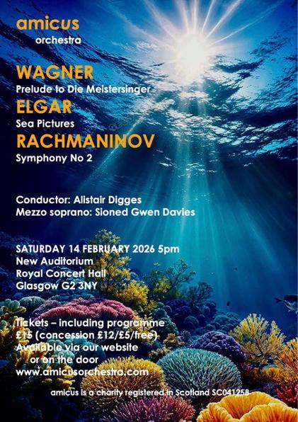 Lynne will be performing with Amicus Orchestra (conductor: Alistair Digges, soloist: Sioned Gwen Davies, mezzo-soprano) in Glasgow Royal Concert Hall's New Auditorium on Saturday 14th February at 5pm.
